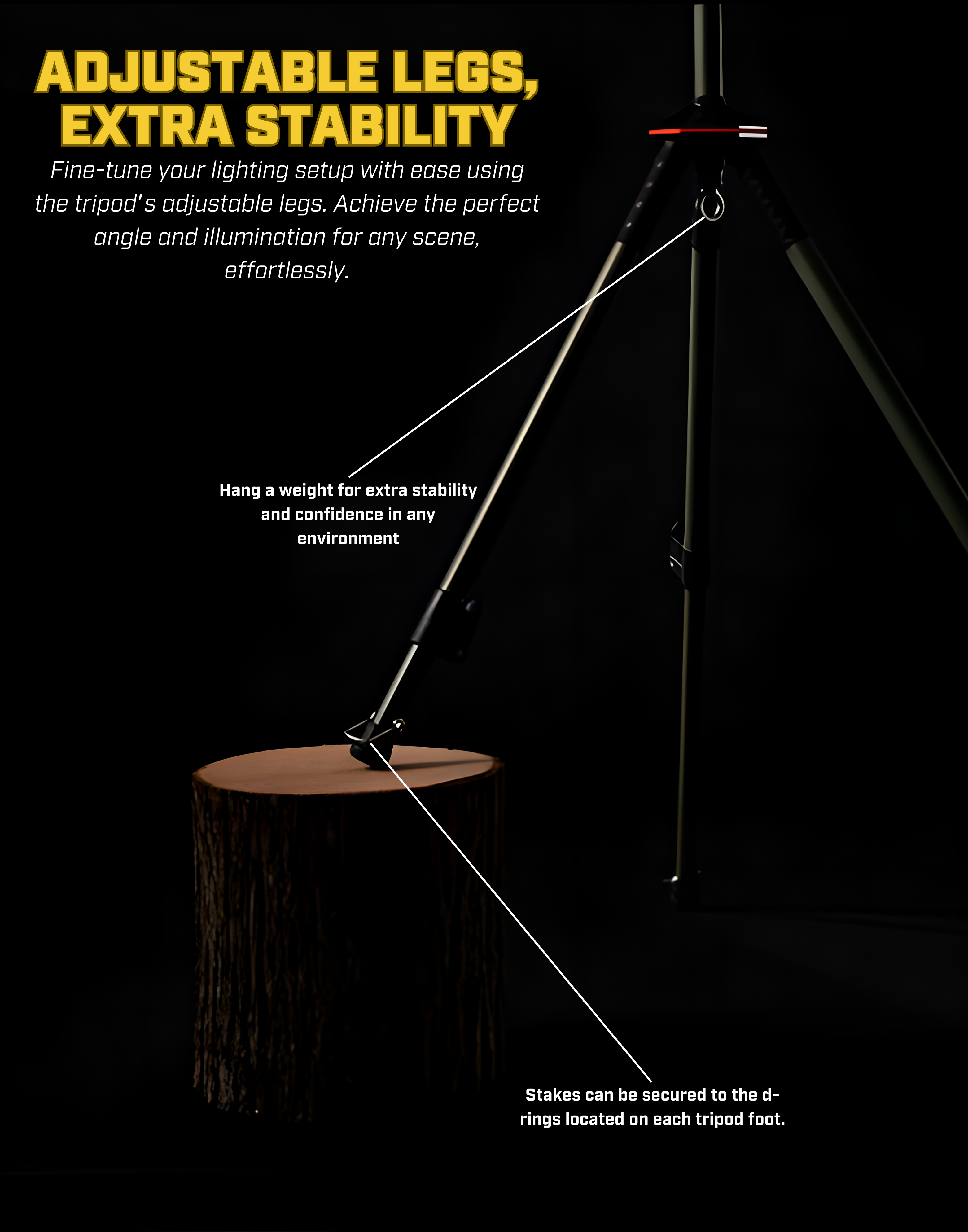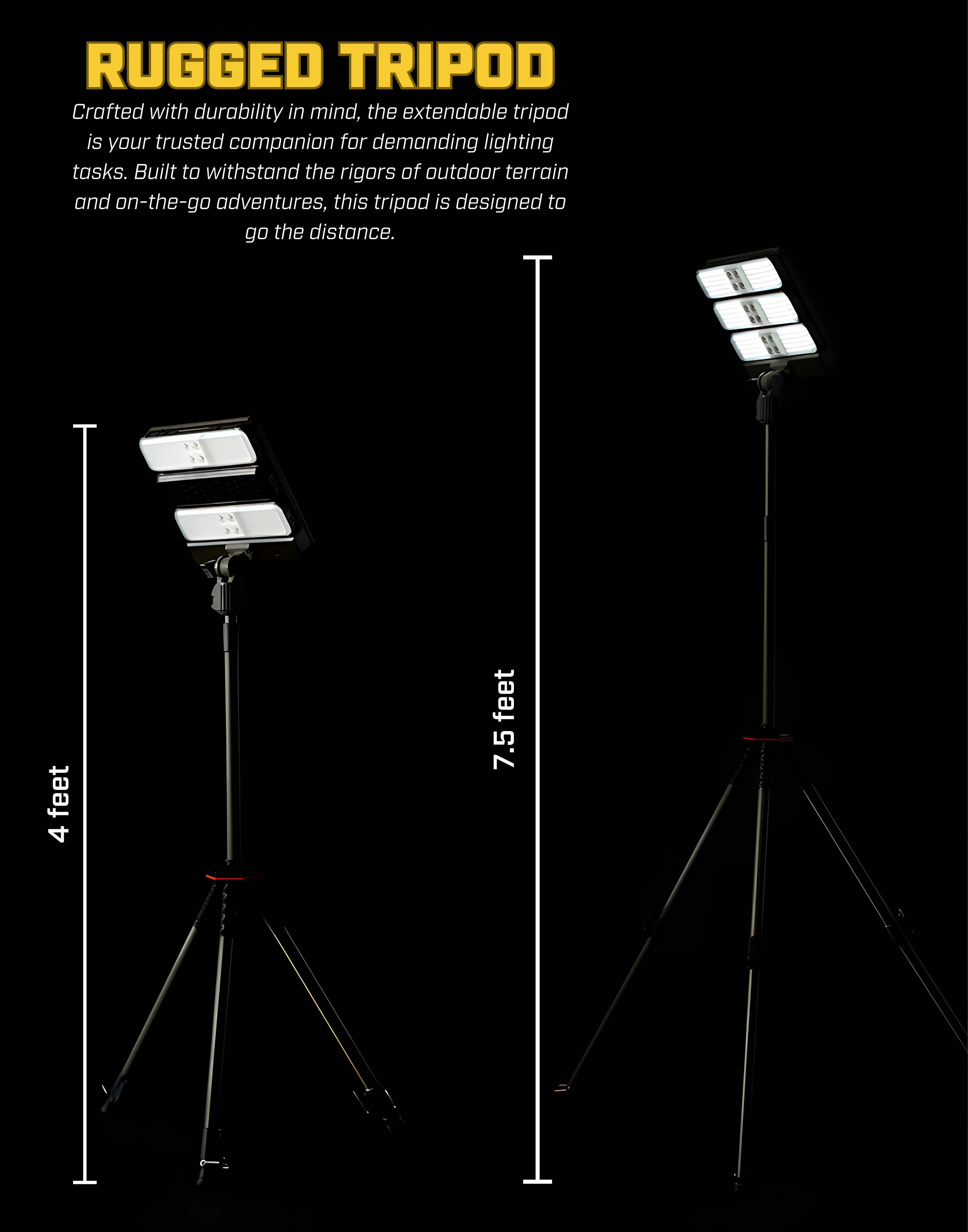 The High Beam is incredibly versatile. It features a USB output on the back, allowing you to use it as a power bank to charge your phone and other small electronic devices. Installation is a breeze, especially with the included telescopic tripod. You can adjust the height from 4 feet to 7.5 feet, and change the light's angle to suit your needs.