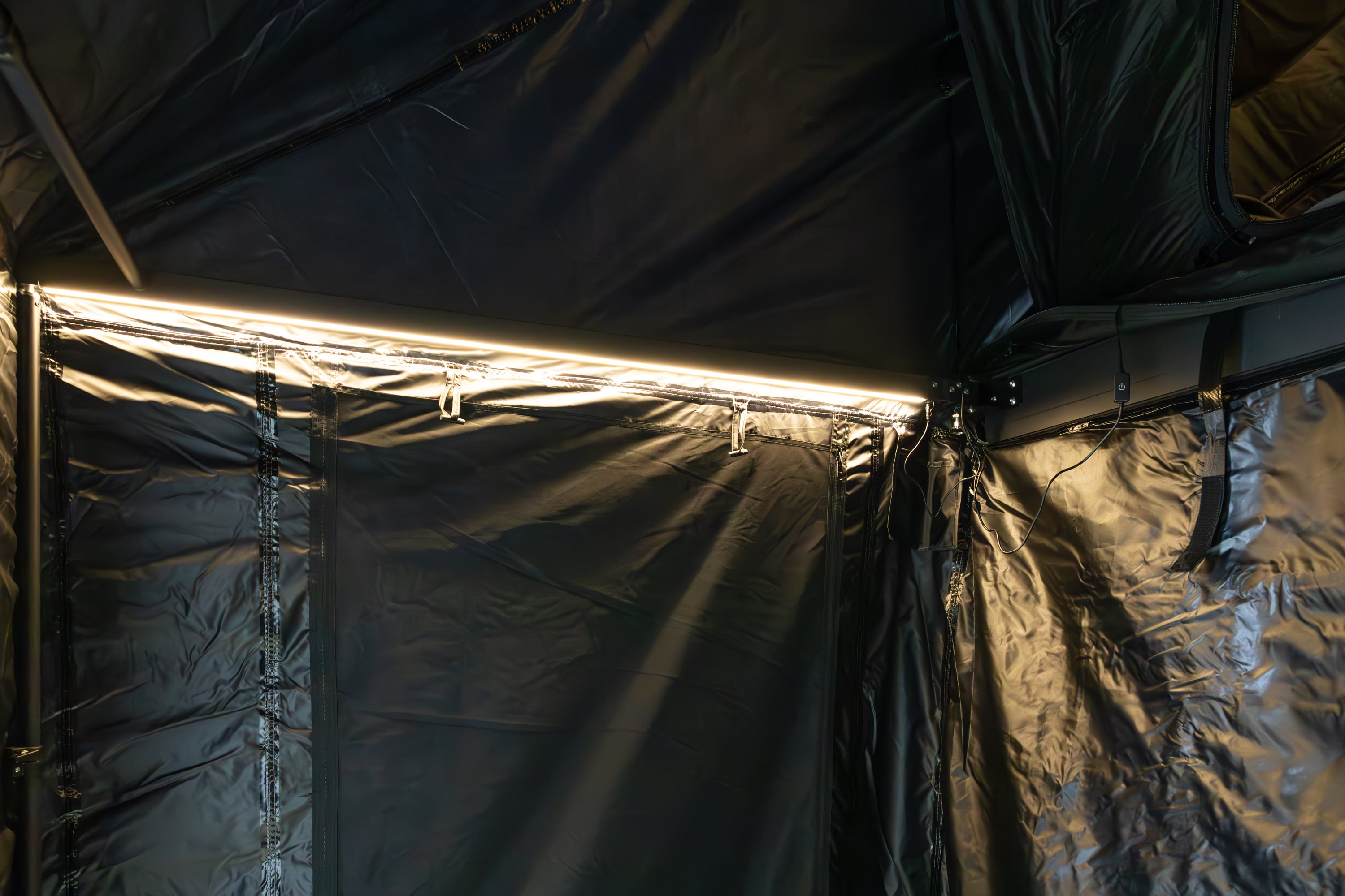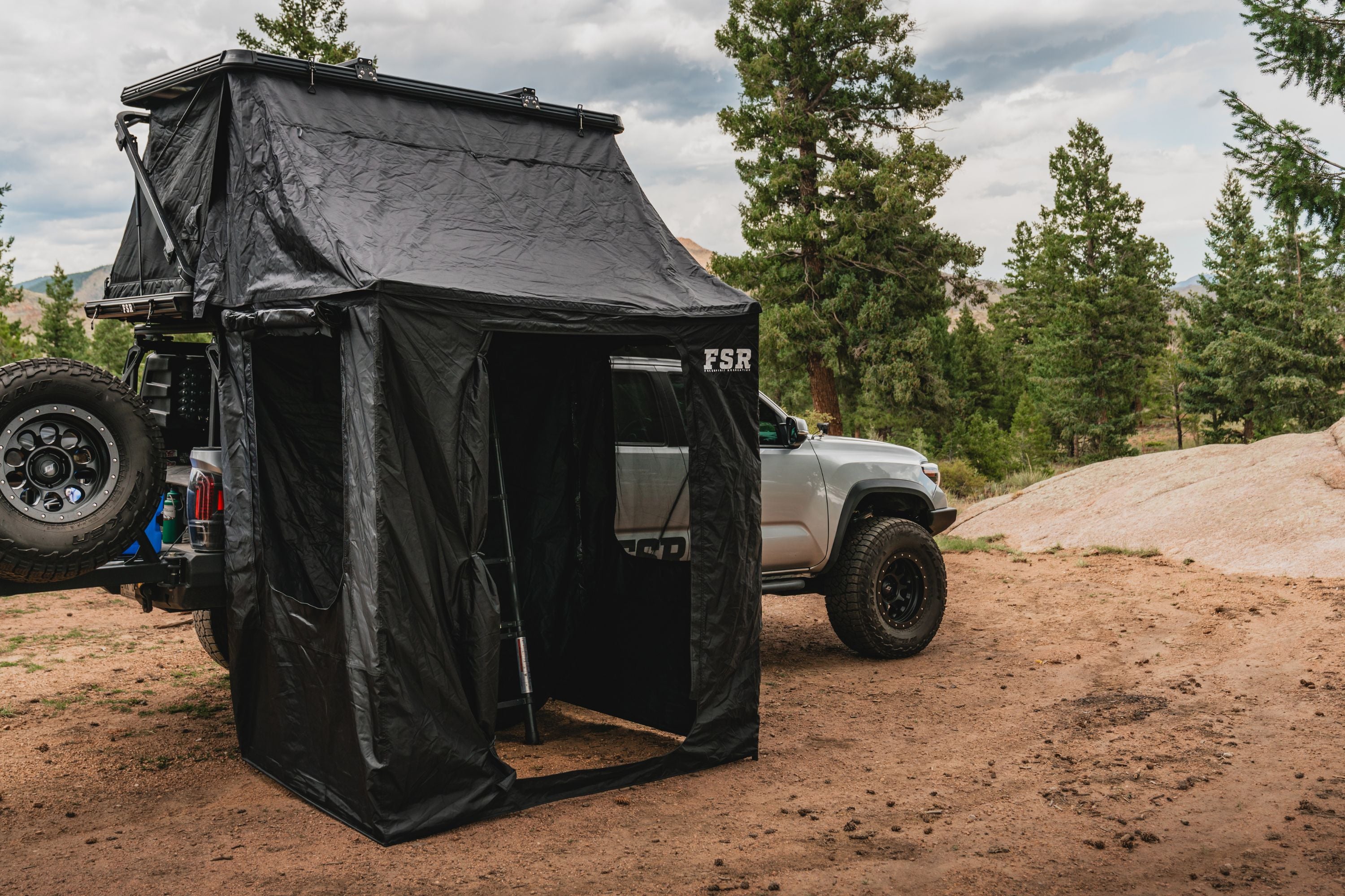 Awn-X Annex Room for Evolution rooftop tents by Freespirit Recreation is designed for complete coverage in and out of your RTT. At just 24lbs, this annex room can be used for extra sleeping space, a changing area, privacy room, space for the dogs, etc. Integrated fabric installed on the roof of your Evo rooftop tent attaches to the deployed arms on your Awn-X Annex room.