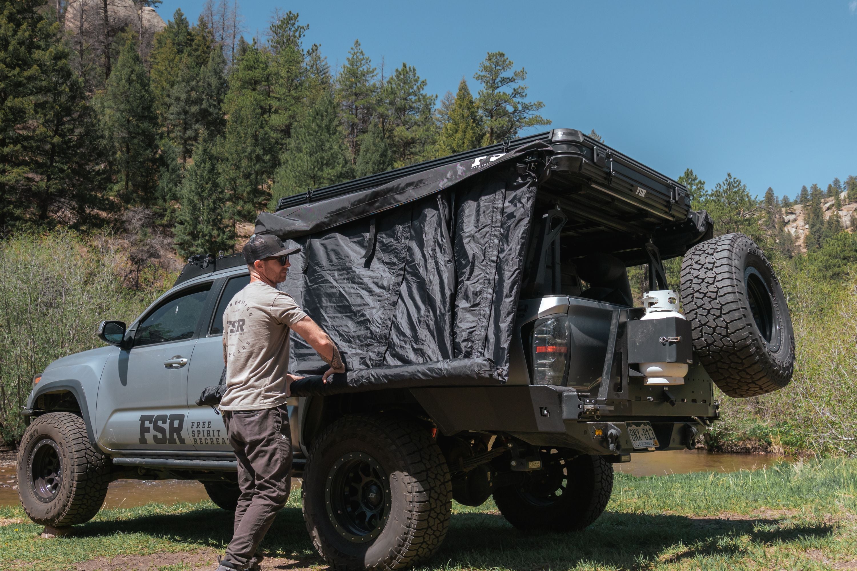 The Double Shower/Privacy room by Freespirit Recreation is the perfect compliment to any rooftop tent or camping set up. With the option to mount directly to our Aspen, Evolution and Odyssey series tents, you'll experience the perfect setup providing you privacy and the option to pass into your rooftop tent. If you're not using a rooftop tent, this still provides a perfect double shower room, changing room, bathroom, or general privacy when outdoors or at a campground.
