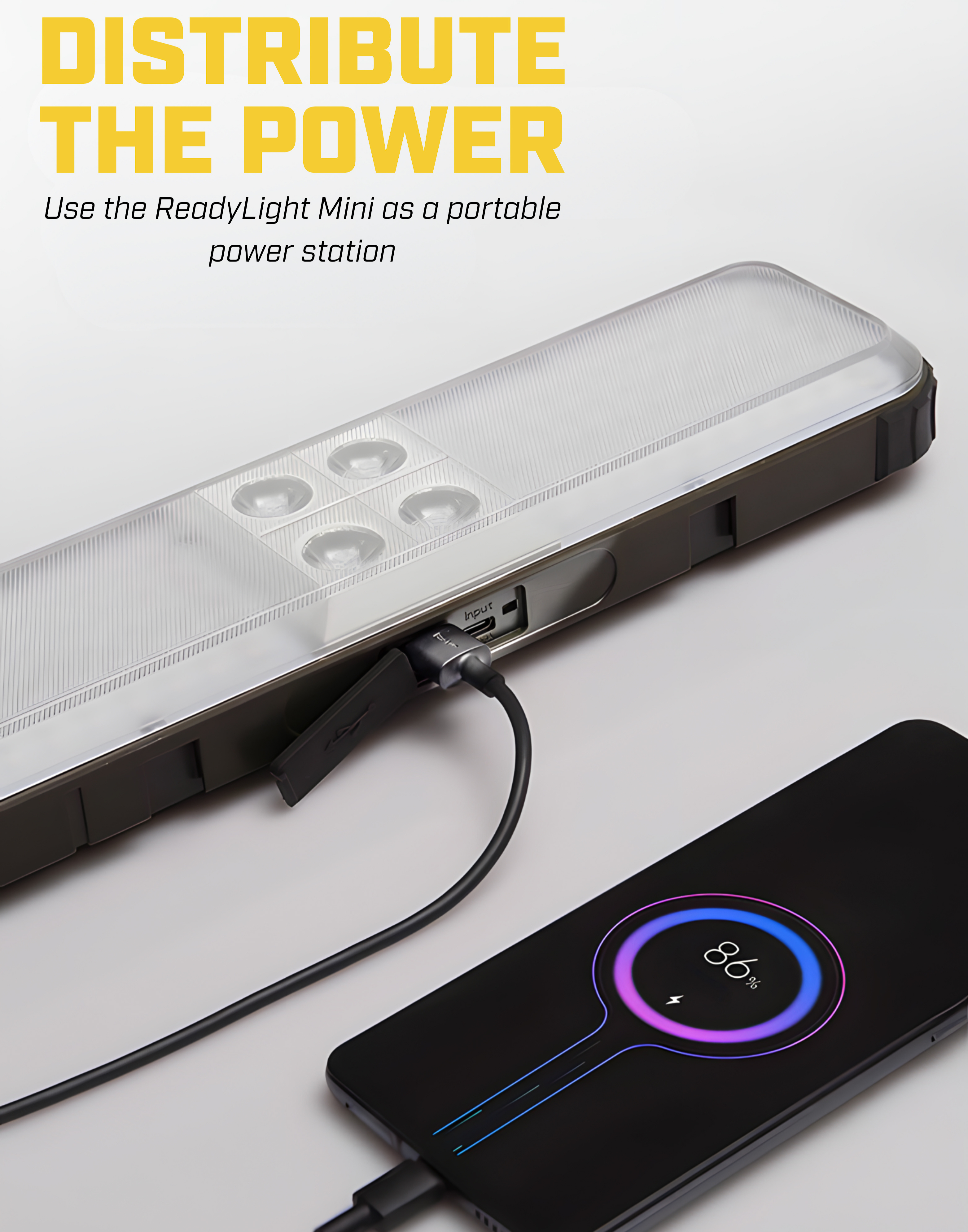 For added convenience, the ReadyLight Mini features an integrated solar panel on its rear, allowing you to harness the power of the sun. Simply place it outdoors during the day, and it will fully recharge, ensuring you're ready to illuminate your surroundings once again when night falls. The ReadyLight Mini is the embodiment of simplicity, reliability, and versatility, making it the perfect lighting solution for any adventure.